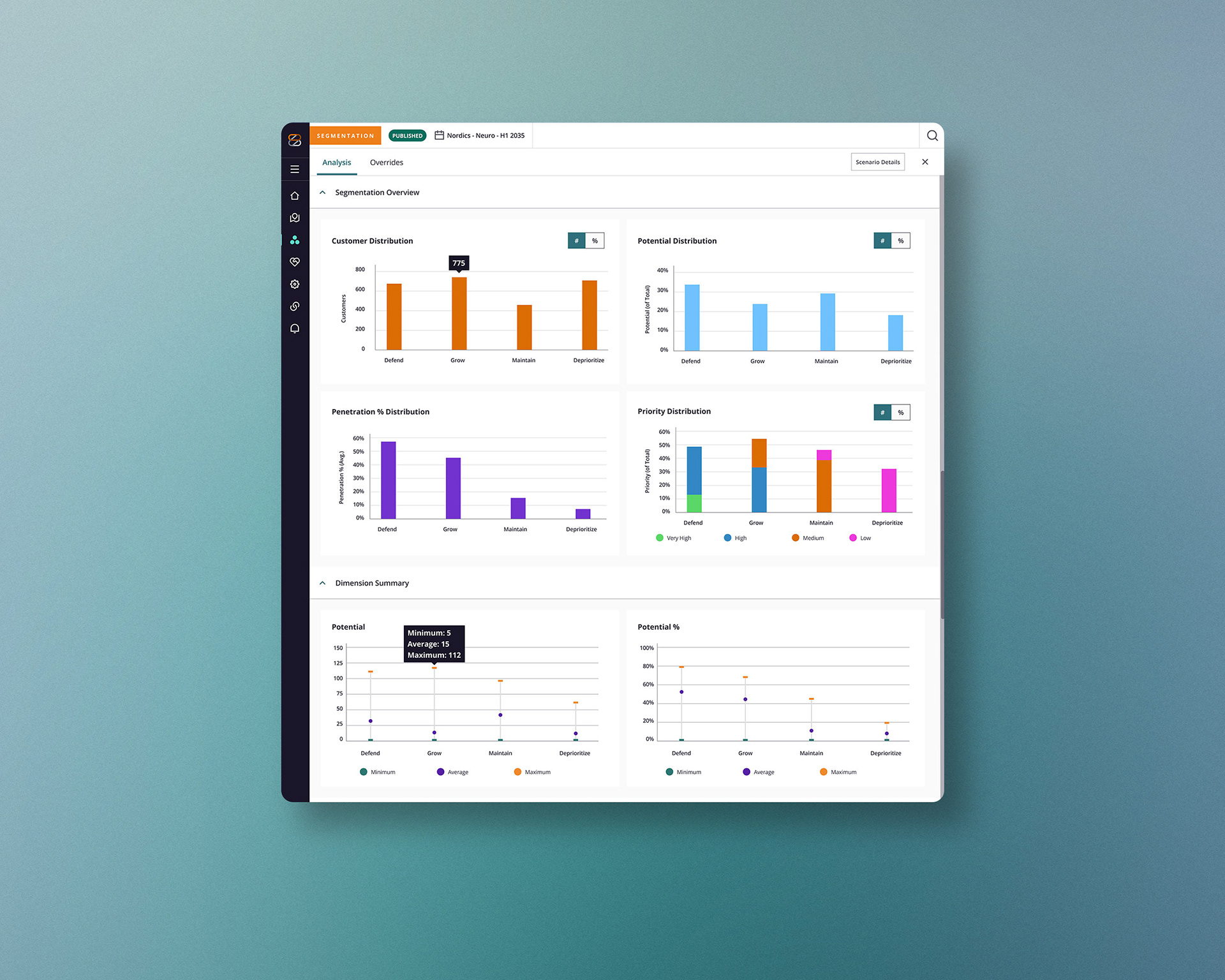 The Segmentation feature helps users create strategic customer segments to support data-driven sales planning and resource allocation.